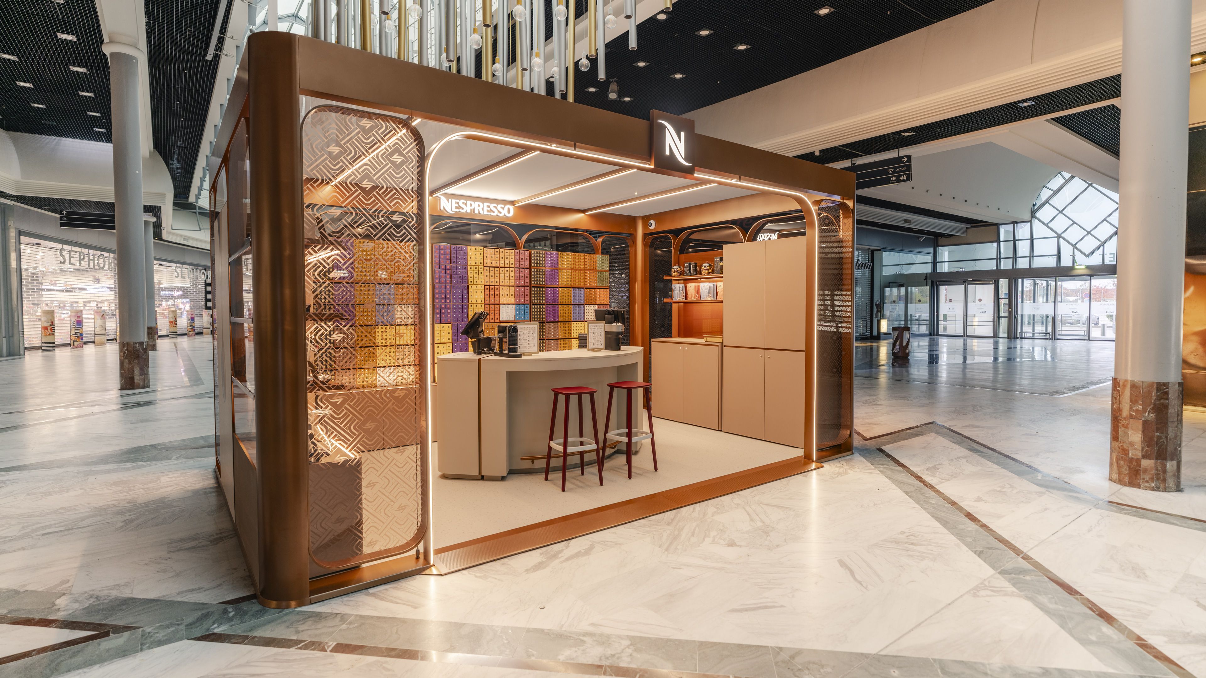 Grâce à notre partenariat avec Nespresso depuis 2017, nous poursuivons le développement de notre réseau retail avec cette 11ᵉ boutique. Un lieu pensé pour découvrir les dernières innovations de la marque et savourer un Nespresso, en toute convivialité.